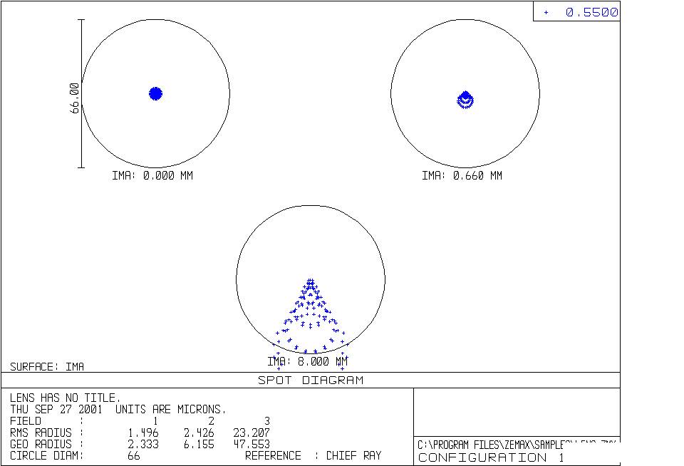 各スポットダイアグラムは、視野(視野中心、スリット端、スリットビュア端)